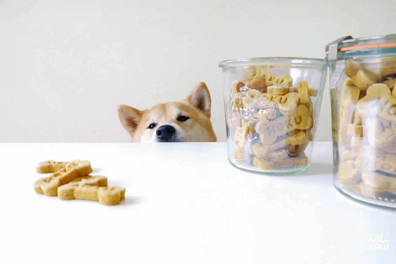 Hoku wouldnβt leave my side the entire time I was making these because I must say they smelled so amazing. (And to my amusement, the flour in the air kept making him sneeze!) After waiting patiently for the treats to bake and cool, Hoku finally got his chance to gobble down FOUR of his special name cookies, because hey itβs the weekend before Christmas!