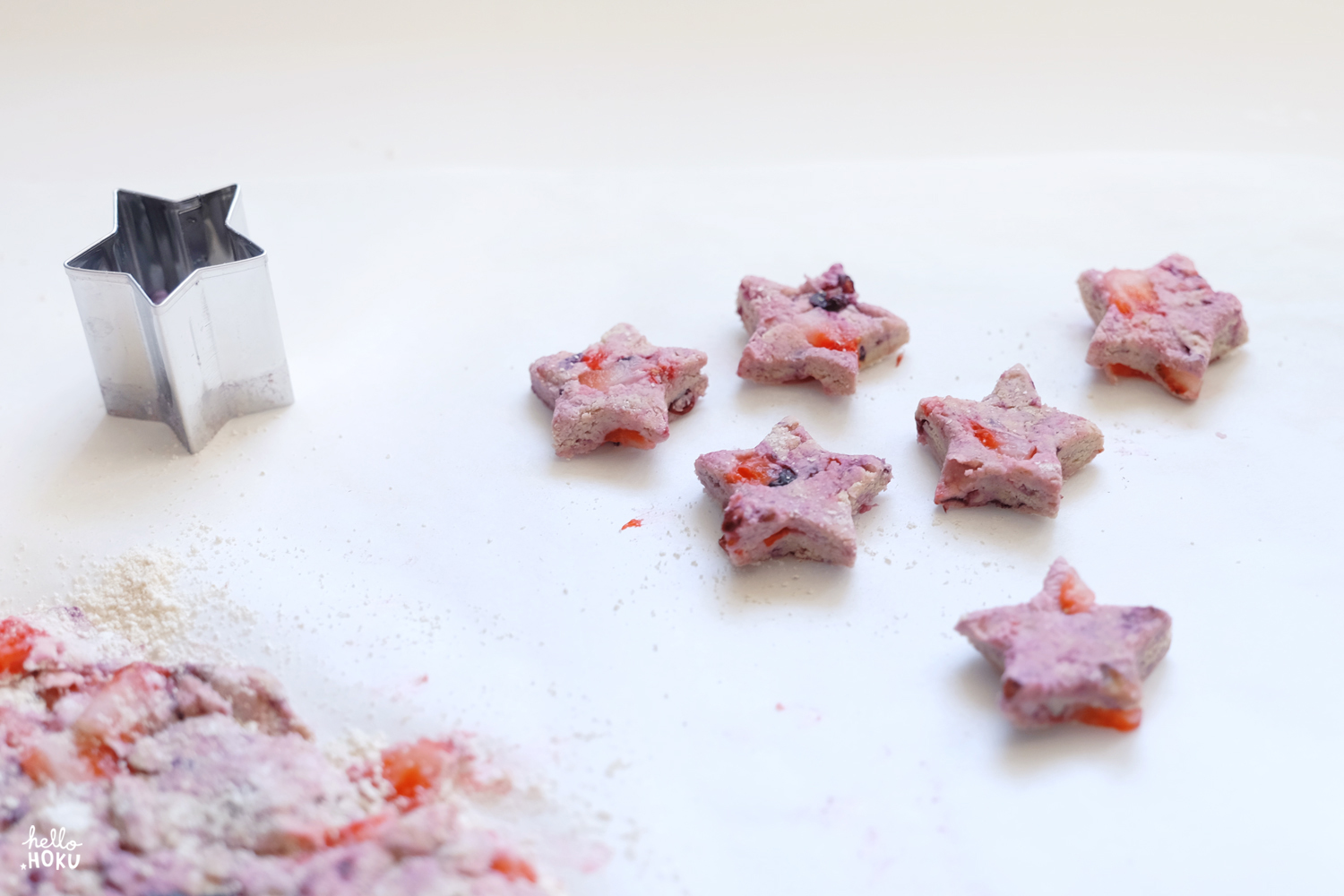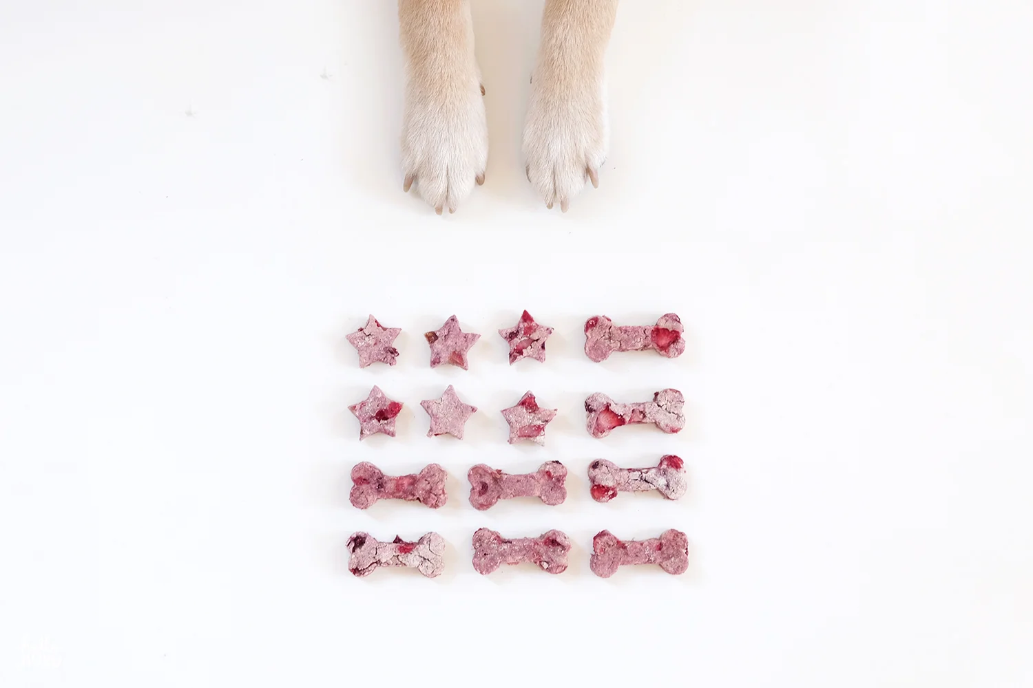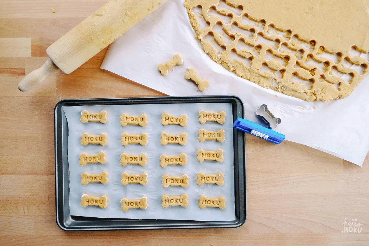 Aside from the dough being a bit sticky which made it a little difficult to stamp out the shapes, the recipe itself is really simple. I always appreciate a good dog treat recipe that uses only a few human-grade ingredients. Iβd definitely suggest keeping a bowl of flour nearby for dusting the cookie cutter before every cut as well as for dusting the rolling pin.